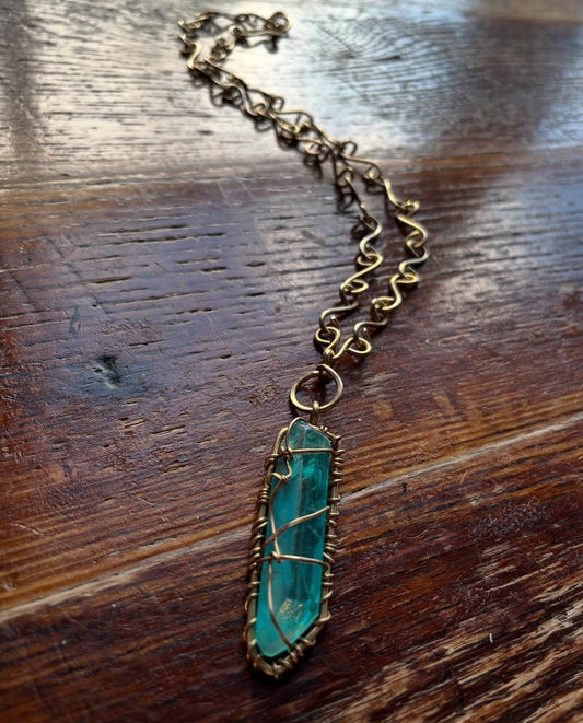 AQUA AURA QUARTZ S-LINK NECKLACE IN BRONZE