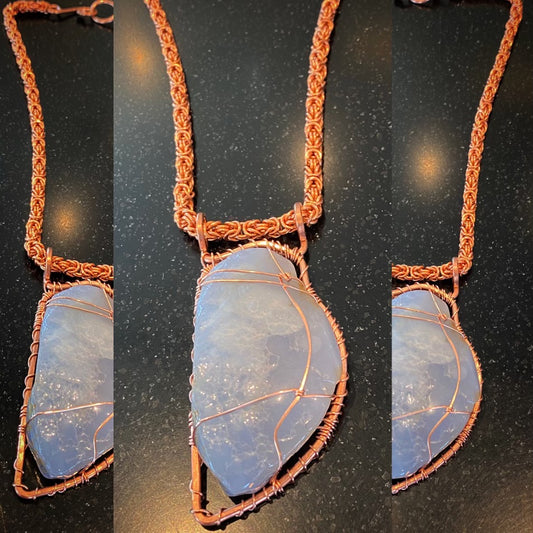 COPPER+BLUE LACED AGATE BYZANTINE NECKLACE