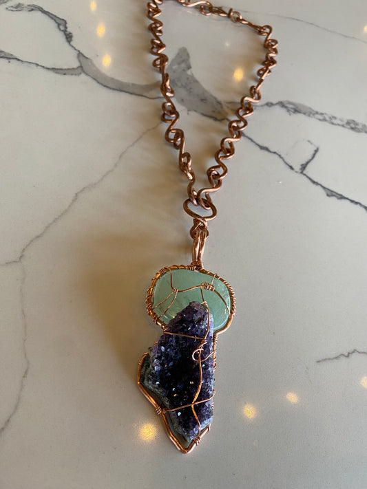 BRASS+BRONZE+TITANIUM AMETHYST NECKLACE