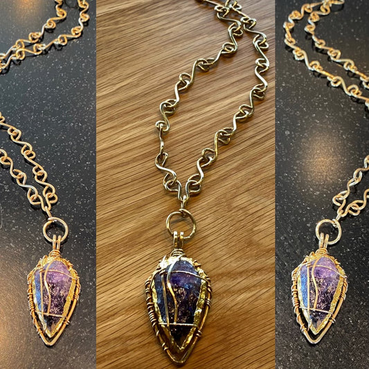 BRASS+BRONZE+AMETHYST ARROWHEAD NECKLACE