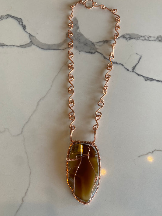 COPPER+AGATE+TIGERS EYE S-LINK NECKLACE