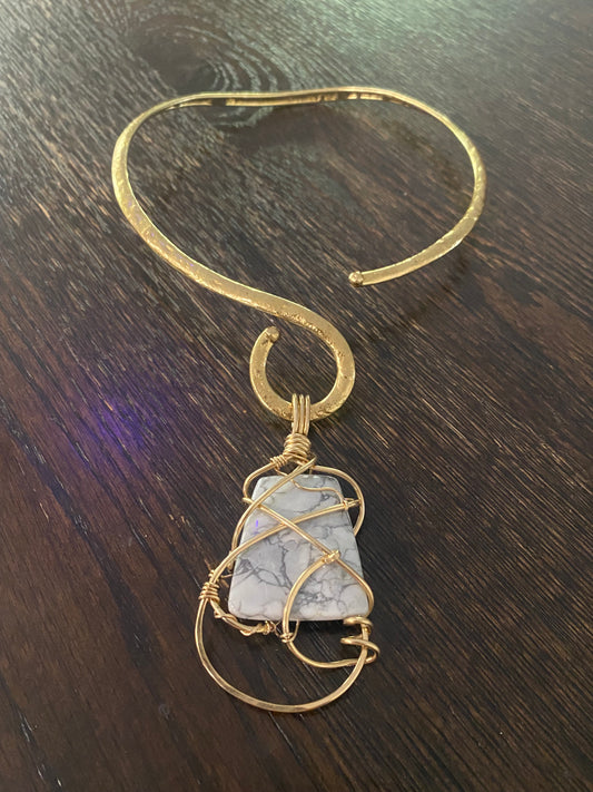 Sold outBRASS+BRONZE+HOWLITE CHOKER NECKLACE
