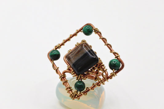 COPPER+TIGERS EYE+MALACHITE PARTY RING