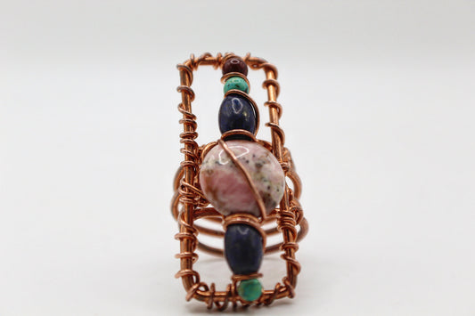 COPPER+RHODOCHROSITE+LAPIS LAZULI+TURQUOISE PARTY RING