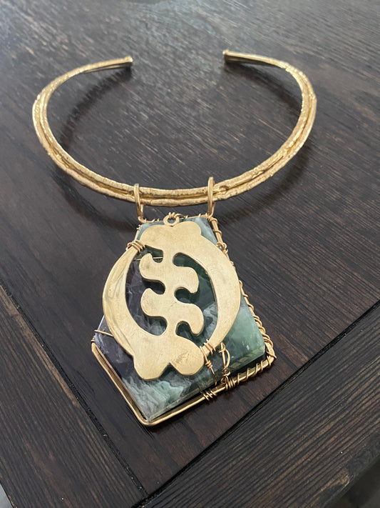 ✨FEARLESS FLOW✨STUNNING BRONZE+BRASS+FLUORITE GYE NYAME NECKLACE