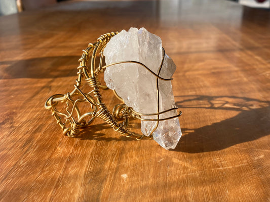 AMAZING BRONZE+MULTI POINTED QUARTZ CRYSTAL HALF-CUFF BRACELET