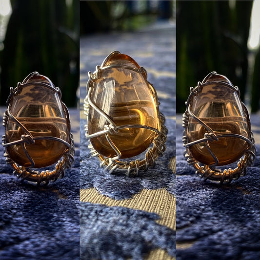 Sold outSILVER+AMBER OBSIDIAN RING