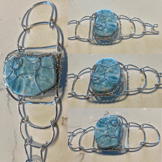“GODDESS GRACE” SILVER+LARIMAR ARCLINK BRACELET