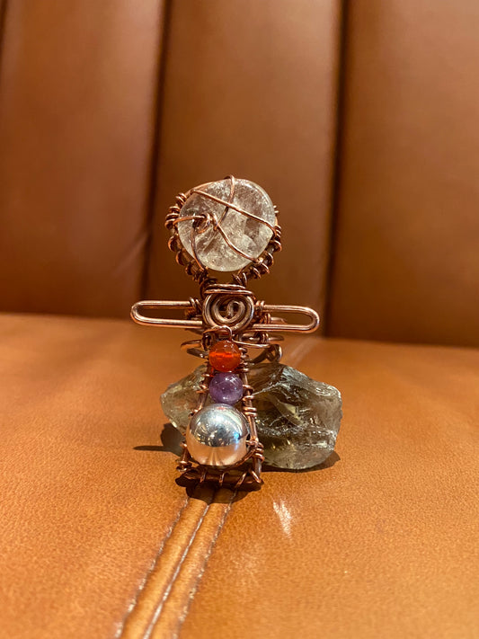 COPPER+CLEAR QUARTZ+CARNELIAN+AMETHYST+ SILVER ANKH RING