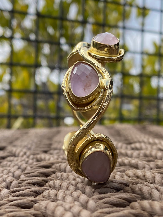 ✨SWEET PETALS OF ROSE✨ BRASS+ROSE QUARTZ BRACELET