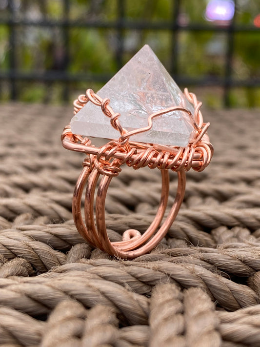 Sold outCOPPER+CLEAR QUARTZ PYRAMID RING