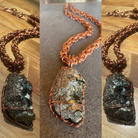 “AMPLIFIED ABUNDANCE” CHUNKY & FASCINATING COPPER+PYRITE BYZANTINE NECKLACE