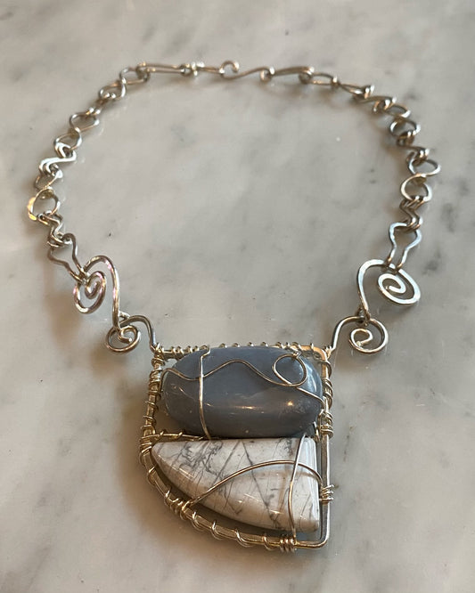 Sold outSILVER+ANGELITE+ HOWLITE NECKLACE