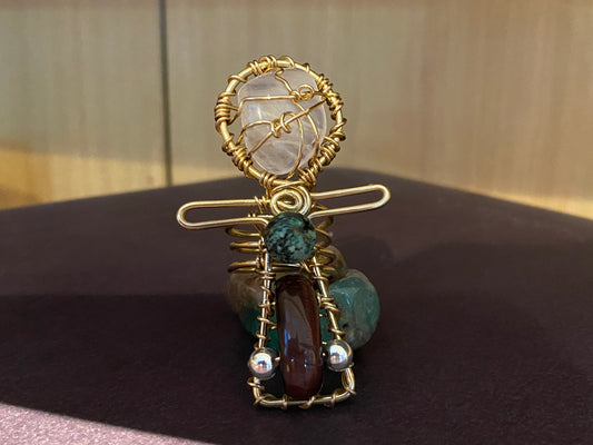 BRASS+COPPER+ QUARTZ +LABRADORITE+ TIGERS EYE RING