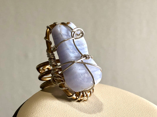 Sold outBRONZE+SILVER BLUE LACED AGATE RING