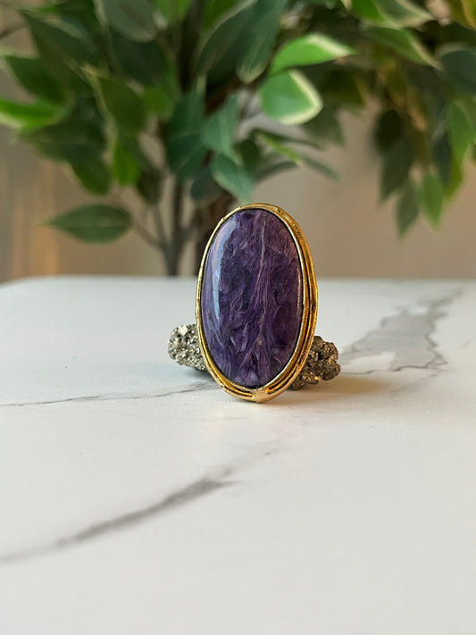 AGATE+CHAROITE+CATS EYE RING IN COPPER & BRONZE