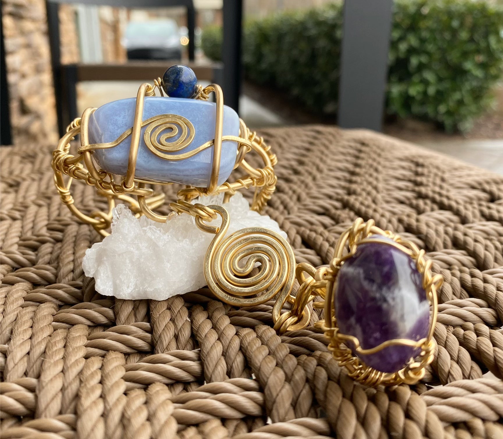 BRONZE+BLUE LACED AGATE+LAPIS+AMETHYST RING BRACELET
