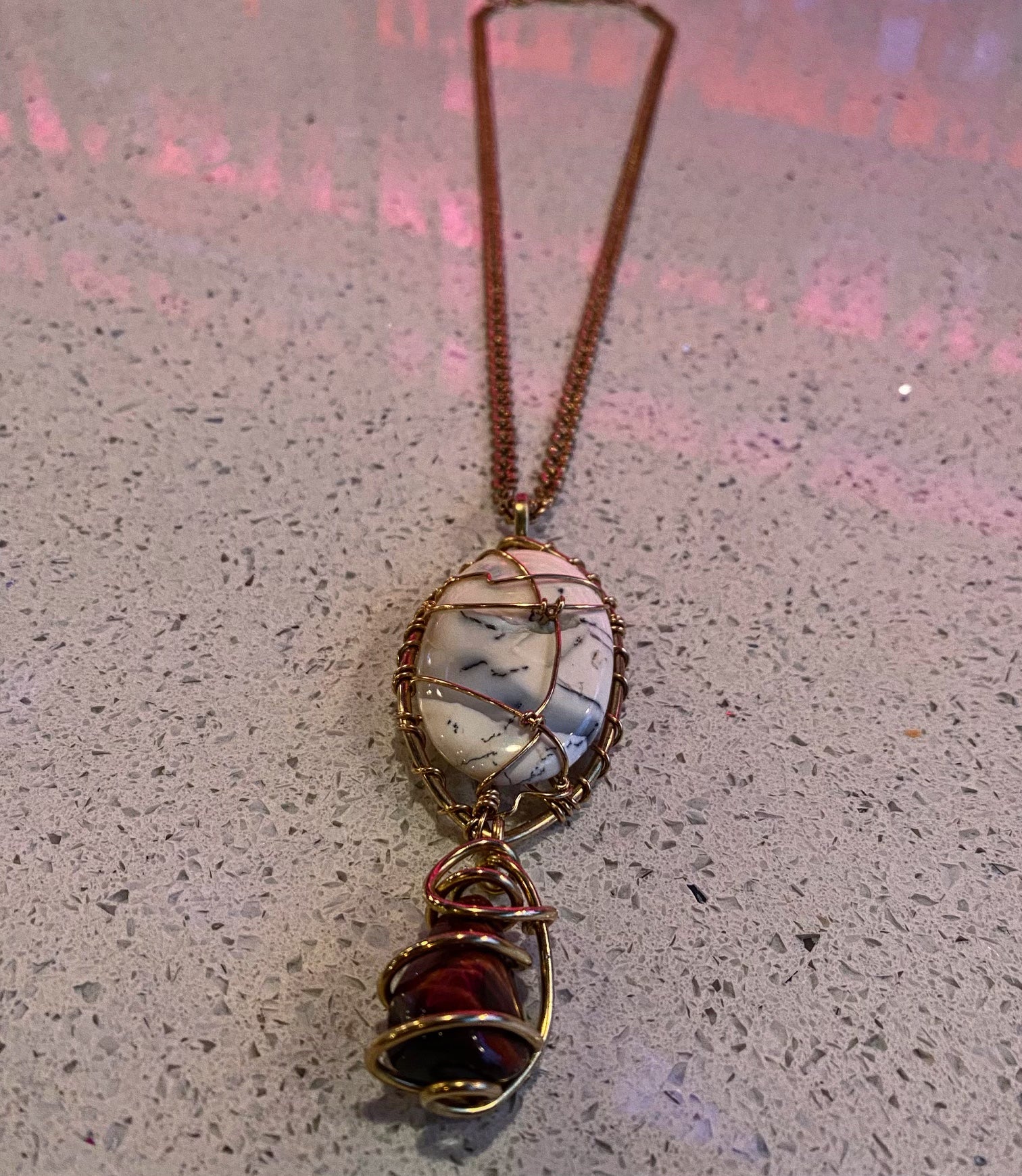 BRONZE+MOSS AGATE+RED TIGERS EYE NECKLACE