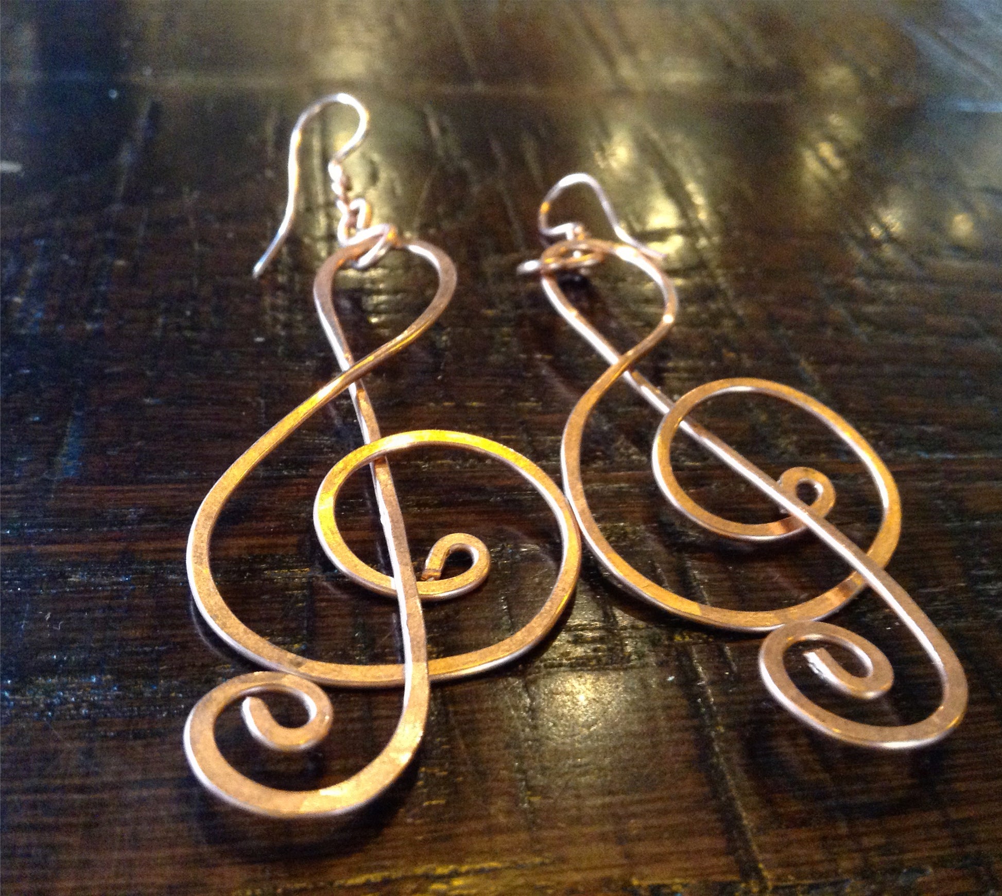 BRONZE "MUSIC TO MY SOL" TREBLE CLEF EARRINGS