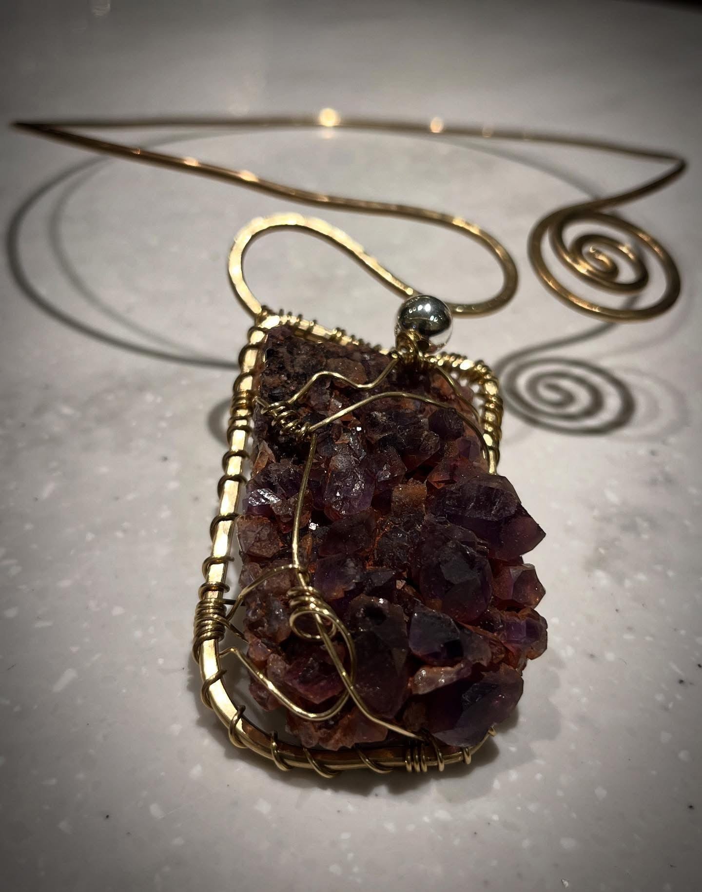BRONZE+RAW AFRICAN IRON AMETHYST S-WAVE CHOKER NECKLACE