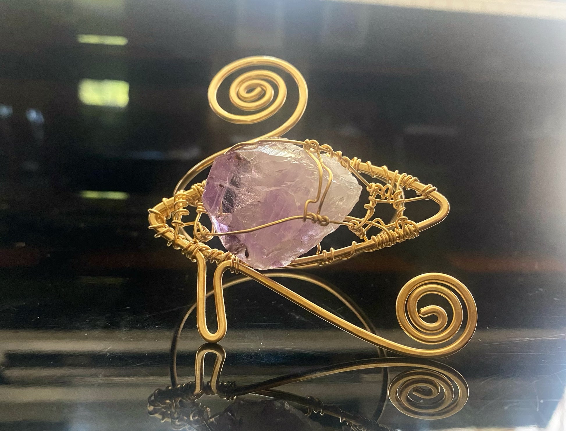 BRONZE+RAW AMETHYST EYE OF HERU WRAP BRACELET
