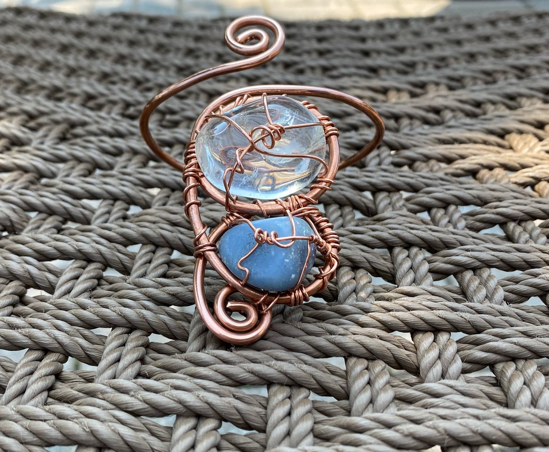 COPPER+CLEAR QUARTZ+ANGELITE SWIRL WRAP BRACELET