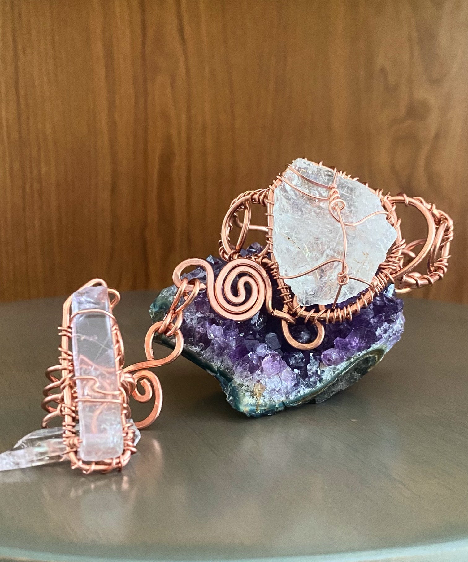 COPPER+QUARTZ+SOFT AMETHYST RING BRACELET