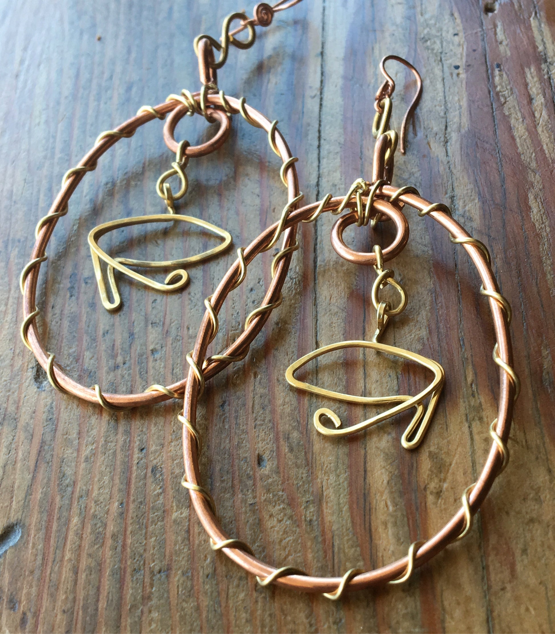 "EYE OF RA" BRONZE+COPPER HOOP EARRINGS