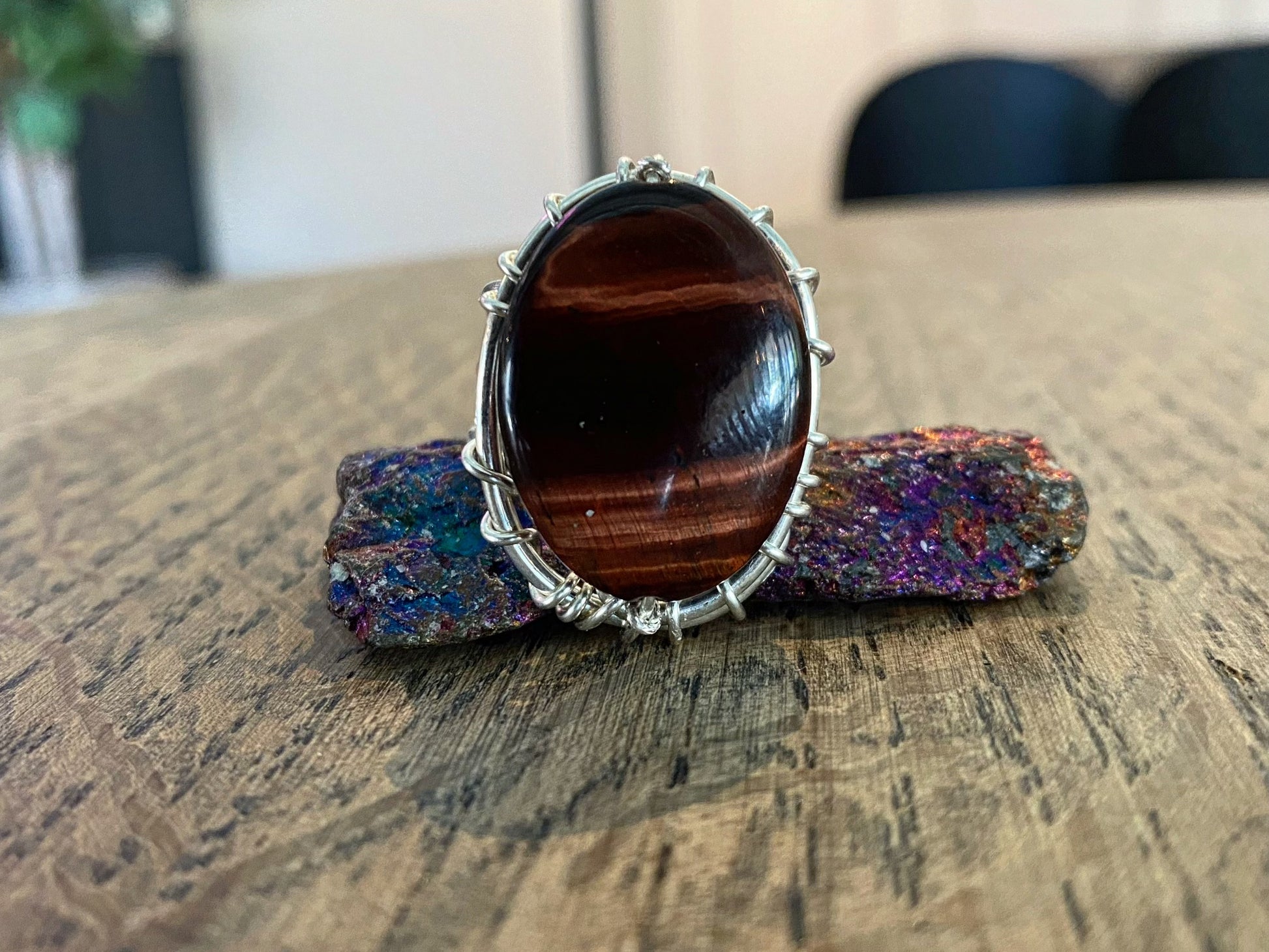 SILVER+RED TIGERS EYE RING