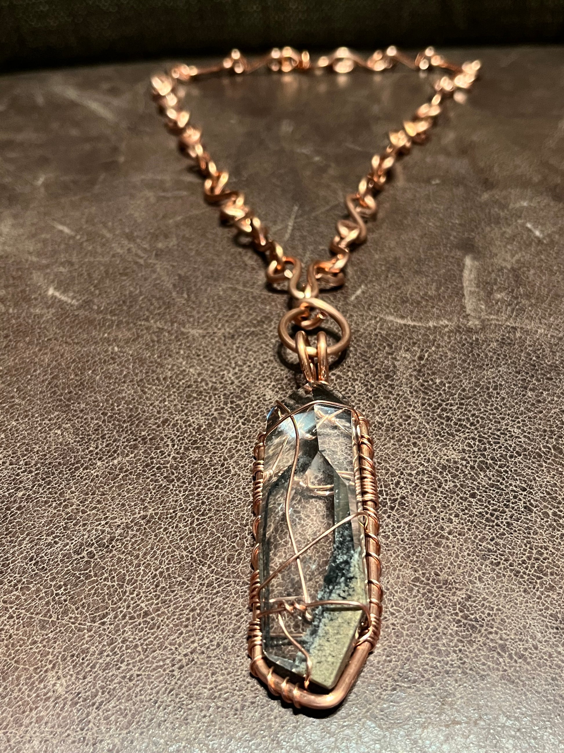 SUPER CLEAR BRAZILIAN QUARTZ S-LINK NECKLACE IN COPPER