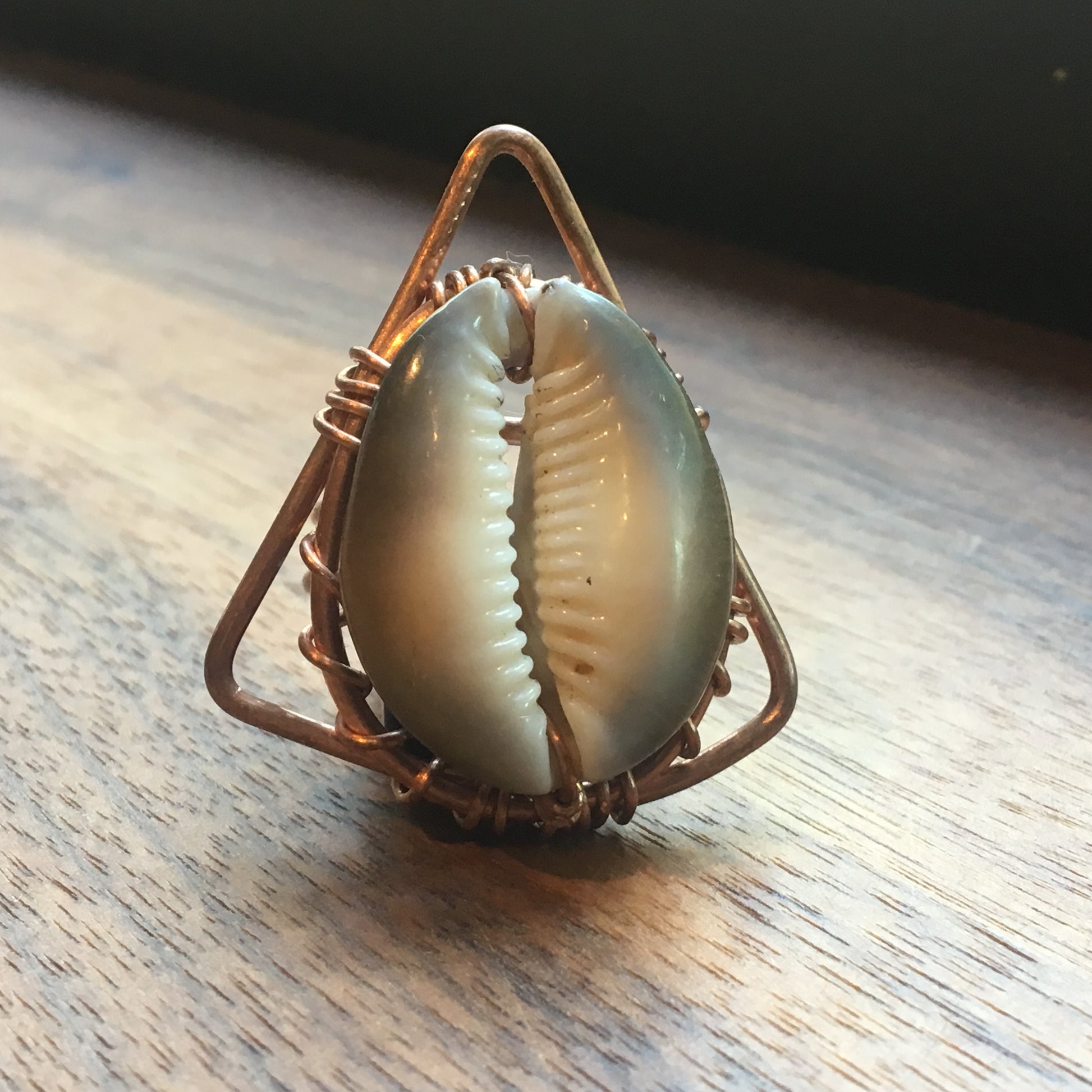 TRIANGULAR COPPER+COWRIE SHELL RING